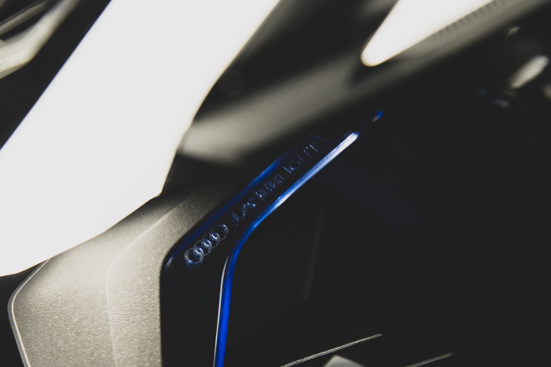 L’habitacle est un manifeste de ce qu’Audi sait faire de mieux. Le volant, gainé de cuir, est à la fois ferme et accueillant. Les doigts glissent naturellement vers les commandes, toutes placées là où elles devraient être, avec un clic précis qui rappelle les boutons d’une montre haut de gamme. L’odeur… mélange subtil de cuir pleine fleur, d’alcantara moelleux et d’une pointe de métal brossé. On ferme les yeux, et l’on pourrait presque se croire dans un atelier artisanal où se mêlent savoir-faire ancien et technologie de pointe.
