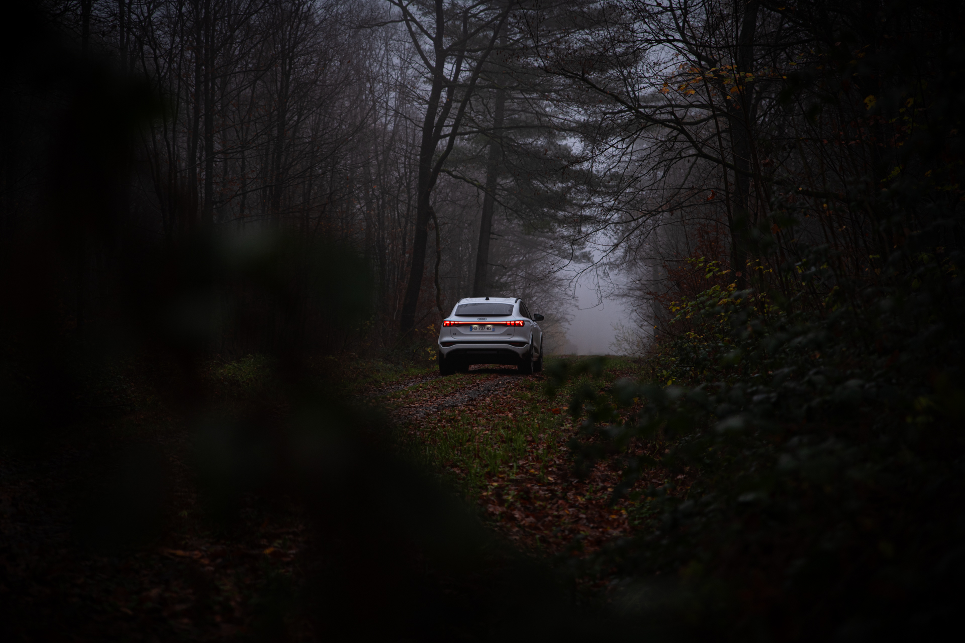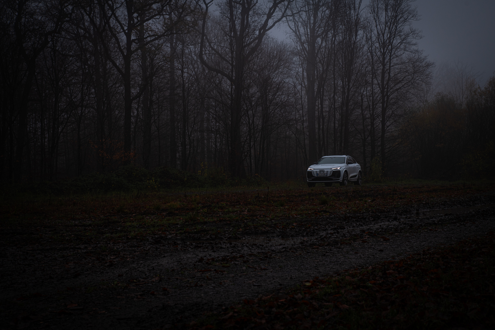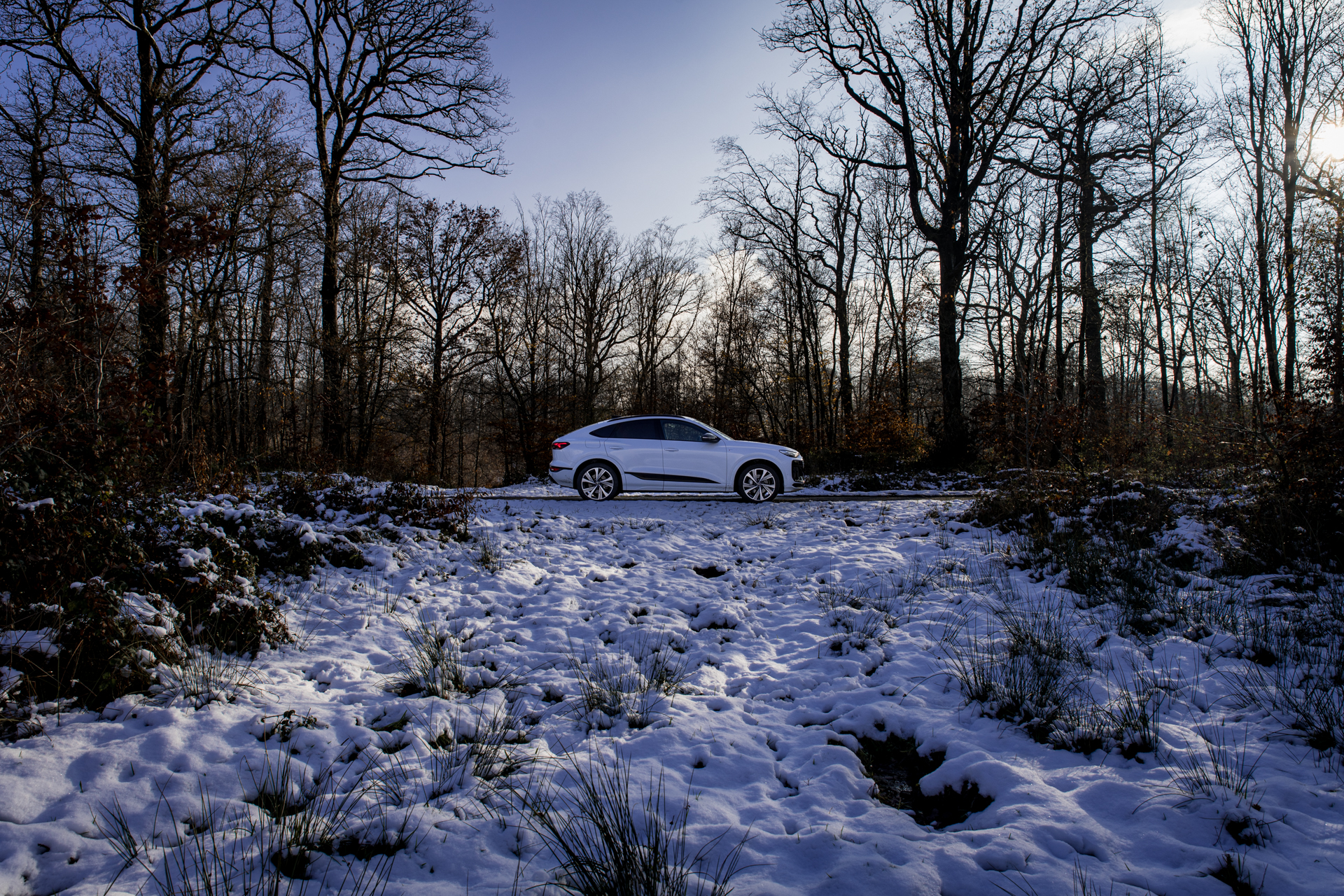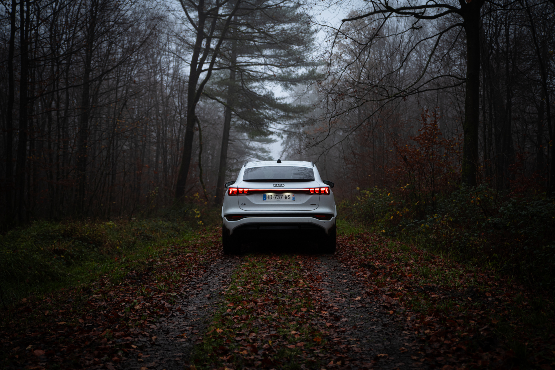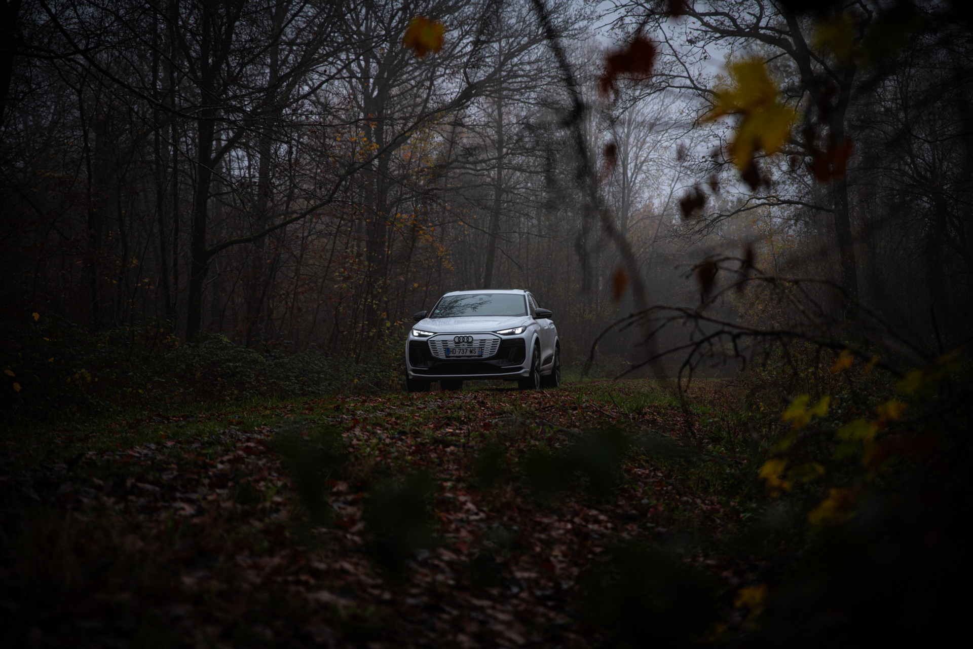 La transmission intégrale, gérée électroniquement, participe grandement à cette sérénité. Sur sol sec, mouillé ou enneigé, la motricité demeure exemplaire. Durant nos essais, qui ont pris place dans des conditions météorologiques extrêmes (de 17 °C à –5 °C, avec neige, humidité et vent) la voiture n’a jamais donné le moindre signe de fragilité. Cette stabilité, cette rigueur typique d’Audi, transforme un SUV électrique en véritable machine à avaler les kilomètres dans un confort remarquable.