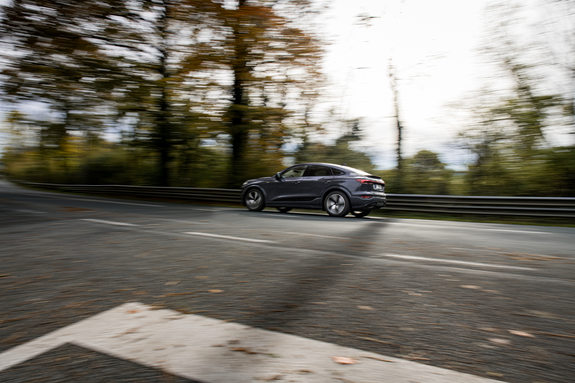 C’est une Audi Sportback, au sens noble du terme : l’équilibre parfait entre la raison du SUV et l’émotion du coupé. Les proportions sont impeccables, les 20 pouces remplissent bien les passages de roue, la garde au sol reste contenue sans trahir le confort. Rien ne choque, tout s’aligne, tout s’accorde. Une vraie leçon de style allemand.