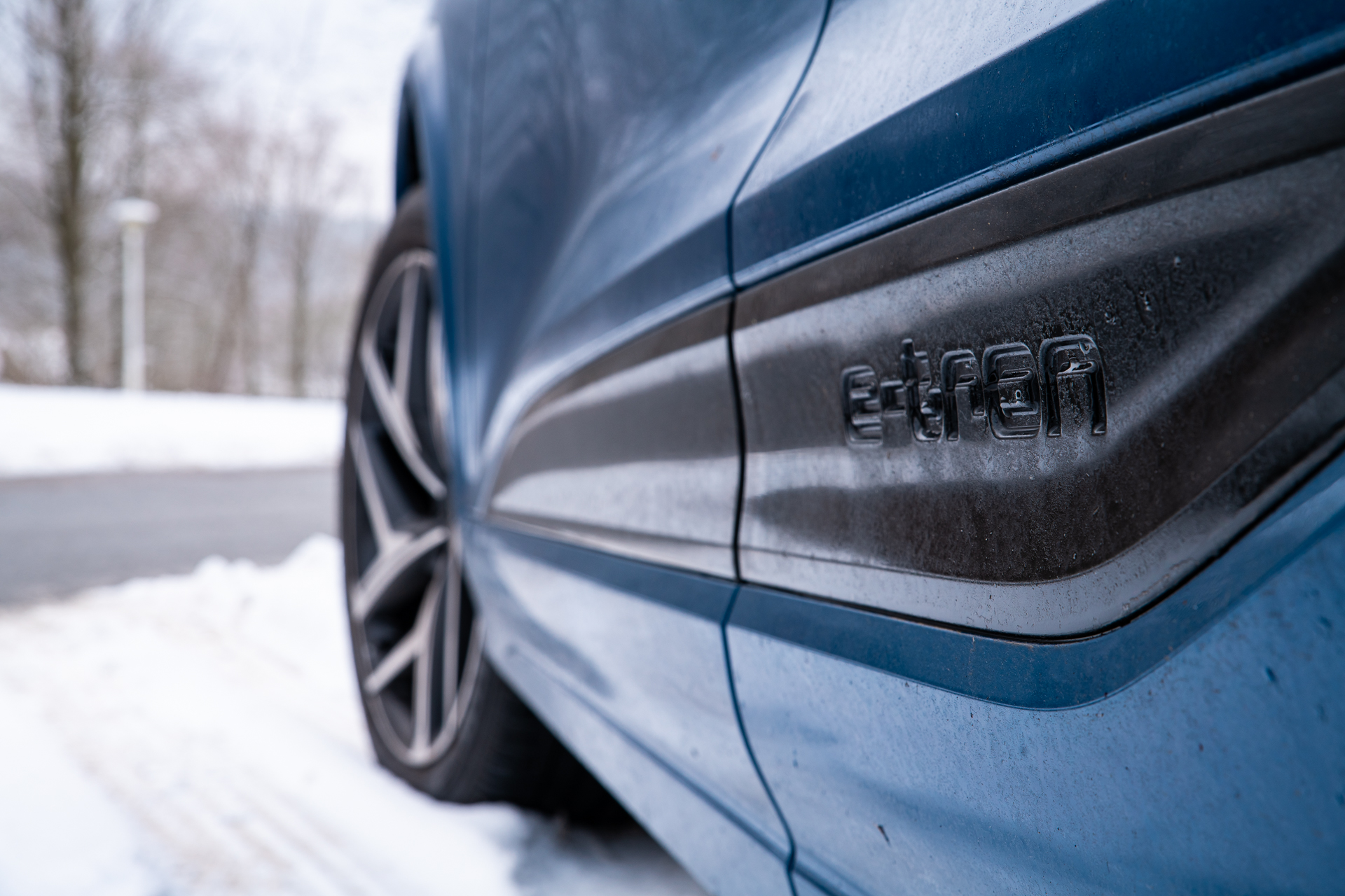 À l’arrière, la chute de toit se fond dans une poupe large et plantée, qui respire la stabilité. Le bandeau lumineux transversal souligne la carrure du SUV, élargit visuellement la voiture et renforce cette sensation de sérénité, particulièrement rassurante sur chaussée froide ou partiellement verglacée. Là encore, la mise en scène lumineuse n’est pas seulement esthétique : elle participe à la signature visuelle de nuit, mais aussi à la lisibilité des intentions du conducteur pour les autres usagers sur des routes hivernales souvent mal éclairées.